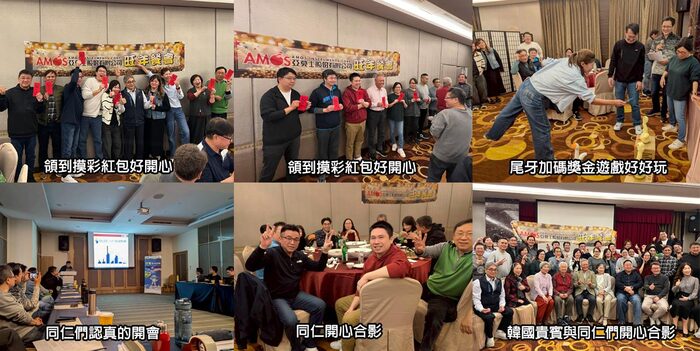 晚上我們有一個溫馨又熱鬧的尾牙饗宴,今年有韓國佳賓的參與讓旺年會更增添了光彩,期望明年亞莫士業績長紅,全體同仁將秉持著「人本的精神、人性的方法」繼續熱情的為夥伴們服務。